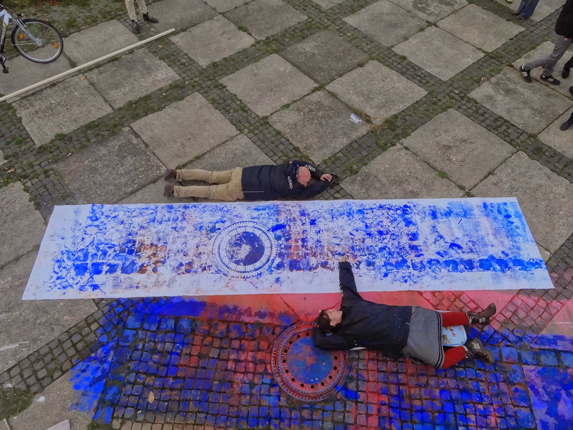 Die beiden Drucke inmitten des Wohngebietes in Kaulsdorf am Cecilienplatz waren die letzten Drucke des Tages. Sie sind auch eine Hommage an zwei Gullis, die von der Geschichte des Viertels erzählen.