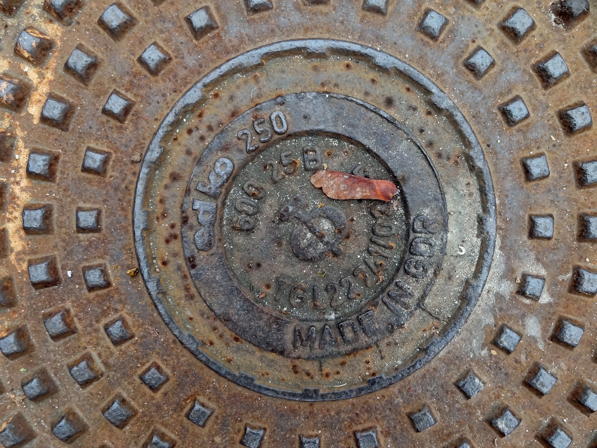 Einmal der belassene „Made in GDR“ Gulli und dann ein weiterer Straßengulli, der aufgrund seiner Lochbreite wohl heute als unzulässig beschrieben werden muss.
