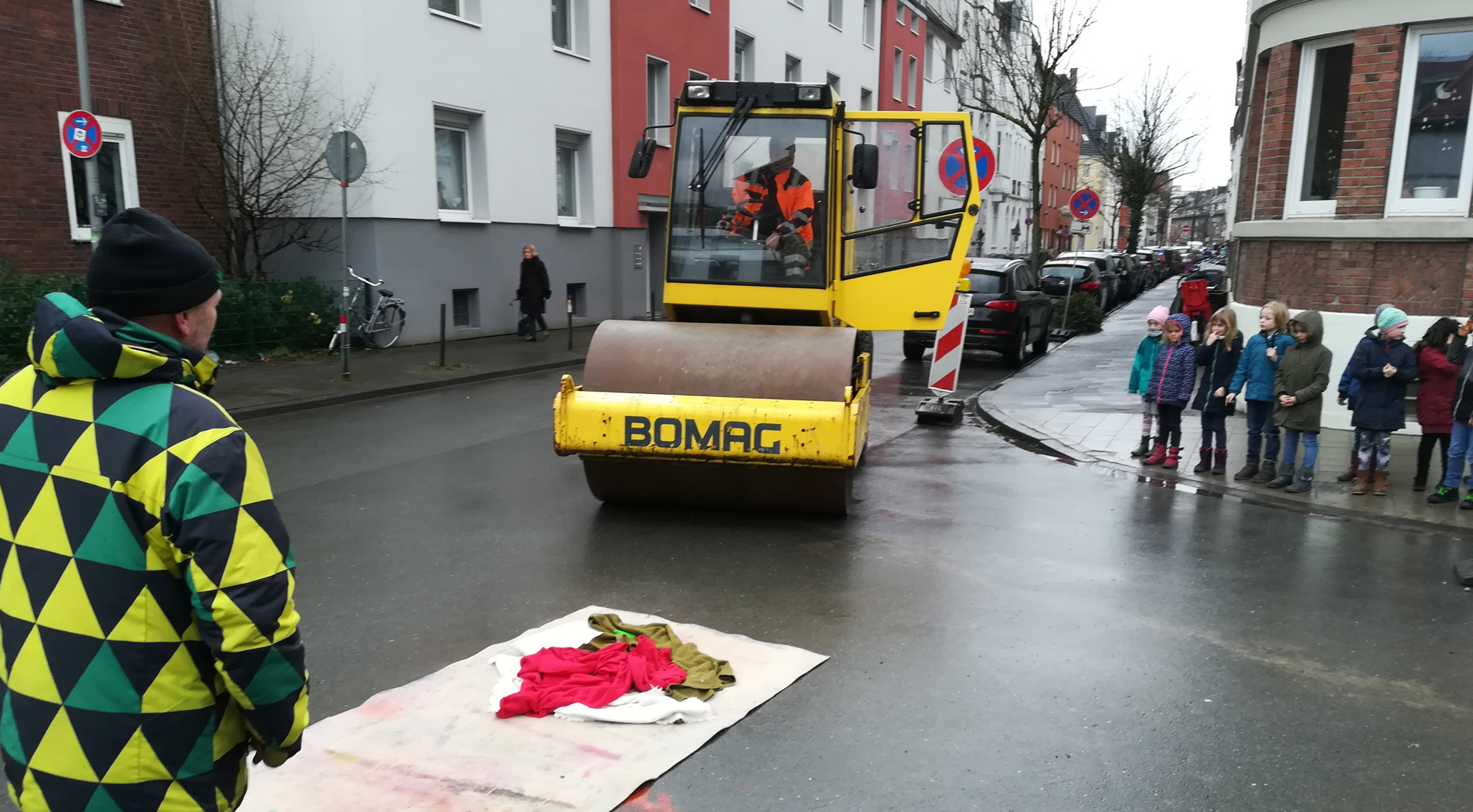 Vielen Dank an die benachbarte Baustellenleitung, die uns so unbürokratisch weiterhalf, den Walzenfahrer für seine schwere Fahrt, den spontanen Besuch der zweiten Klasse von der Bodelschwinghschule!