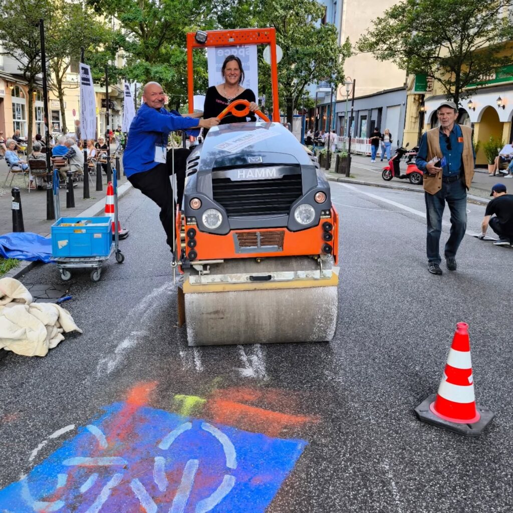 Mittels einer traditionellen Planierwalze entsteht vor Ort eine Kartographie des Bodens im analogen Format von 1 : 1.